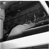 F6 Karlsborg 1943. Denna apparatur konstruerades vid sjukavdelningen F2 i samråd med professor U. von Euler. För att åstadkomma sammanpressning av lårbensartärerna användes två uppblåsbara gummimanschetter (bilden). Albumet är en del av en donation från Karl-Axel Hansson, Karlsborg. Förteckning över hela donationen finns i albumet samt som Word-dokument.