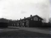 "1930. 24. Baracken arbetarbostad vid Munkedals fabrik." "Huset innehöll åtta bostäder. Huset revs på 1960-talet. Vedbod till vänster."