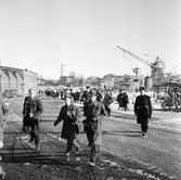 Bilden visar militärer från marinen som marscherar förbi en läktare med kungen och annat folk.