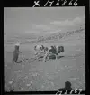 Text på montering i arkivet: Man bereder sig att hala upp det 90 famnar vida bottengarnet.