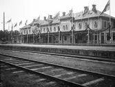 Järnvägsstationen i Vetlanda. Motorvagn Statens Järnvägar, SJ YO på smalspårigt till vänster.