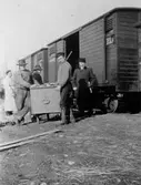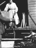 Josefina Liljefors, Lina Widerbäck och Artur Rydin på Svartbäcksgatan med broflyttningen i bakgrunden, Uppsala 1901