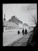 Gävle stad Norr. Järntorget (ungefär där Drottninggatan nu möter Centralplan) med Drottninggatan mot väster. Till vänster kommunalrådet Elfbrinks hus, till höger Murenska huset. De förstördes vid stadsbranden 1869.