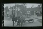 "Rikard Fredriksson, Kvarntorp Fogelstad." En man håller två hästar.