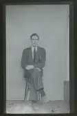 "Sven Fredriksson, Fogelstad tegelbruk." Konfirmationsporträtt av en ung man.