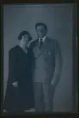 "Frida och Axel Fredriksson, Tegelbruket (taget på bröstbild)" Porträtt av makarna Fredriksson, Frida står på en pall.