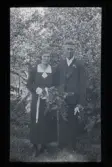 "Gunhild och Nils Fredriksson, Axels brorson." Porträtt av ett brudpar.