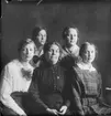 "Grupp 2. Agda, Lina, fru Bodén, J. Skoglund och A. Martinsson. 5 s. f. 11. 13:00 30/4 1916. Molnigt. Imperial." Grupporträtt med fem kvinnor.