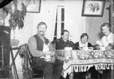 Stuga i kröken, på östra sidan, strax före Midskog, i början av 1920-talet. Fr.v: 1. Selma, dotter 2. "Hökabro-Anders" (Höken), död 1925. 3. Stina, maka t nr 2, död 1925. 4. Fina, dotter 5. Emanuel, fosterson hos Fina. Anders föddes den 5/6 1843. Föräldrarna Olof Larsson, Lindbergslid (f. 12/2 1807) och Maja-Lisa (f i Ransberg 26/11 1805) bodde då på Hökabrona, Hästhagen under Vång, Sannums rote. Därav namnet "Hökabro-Anners" eller "Olles-Anners".
