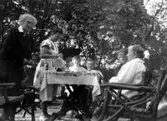 Brokärret (300 m öster om Hultåsen) Omkring 1915-20. Fr.v: 1. Maria Pettersson, tidigare Sänningsbotten 2. 3. 4. Hilda Eriksson, Sänningsbotten, född 1876 5. Lovisa Johansson, Brokärret, född 1857 (söner: David o Oskar) Nr 2 el. 3 är möjligen Ivar Karlssons mor (Habelsbolet) Reprofotograf: Gunnar Berggren.