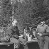 Arbetarkvinnor och barn fikar i gröngräset nedanför arbetarbostäderna i Annestorp.