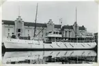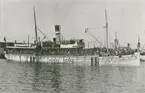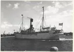 Foto när fartyget passerar Hasseluddens ångbåtsbrygga på ingående till Stockholm. Dublettbild finns i C. G. Jacksons samling med Acc 1957:2041, Fo220842.
