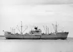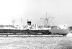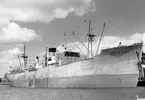 Foto i svartvitt visande lastmotorfartyget "CALIFORNIA" i Köpenhamn, troligen under 1950-talet.