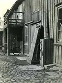Skara. Blads speceriaffär numera Turistbyrå. Taget mot öster, april 1964 från Biblioteksgatan.