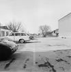 Snödrivor vid bostadshusen på Höjdgatan i Stensjöbacke, Mölndal, efter snöstormen den 17 november 1995. I förgrunden bilar på en parkeringsplats.