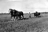 Axel Johansson plöjer åkern med hjälp av arbetshästarna Tyra och Stanley, Labacka Lund 1940.