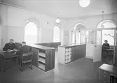 Interiör från polisstationen i Växjö 1904, i nuvarande stadshotellet. Vid skrivbordet sitter överkonstapel Carl Johansson och poliskonstapel J P Bergström.