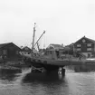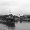 Gävleseglaren Bertil Matton (1896-1955, KSSS-medlem sedan 1926) t v med oidentifierad besättningsman ombord på 22-S8 FYRVÄPPLINGEN III i Sandhamn, juli 1930.