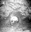 Skelettgrav i Ledsgården, Gökhem. Kvinnograv från 600-talet. Påträffad i potatisfåra. Skelettet i utsträckt läge. Stenblock invid fotändan, kraniet trepanerat.