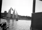 Kronan vid kaj i Västervik 1953. Enligt uppgift b. i Ekenäs. Identisk med den 1862 där fb Kronan?