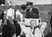 Östermalmsgatan 36. Provtryckning av skorsten. Sotare med flera på taket. I bakgrunden kvarteren Tallkotten och Tallen.