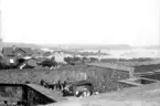 Enligt fotografens noteringar: "Lawn Tennisplanen". Plats: Kasen Datum 3 juni 1895 Tid: Kl 5,15 e.m. Ljus: Solsken Bländare: No 2 Objektiv: Svenska Express Exponering: Hastighet No 2 Framkallning: Hydrochinon, Eikonogen