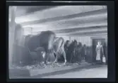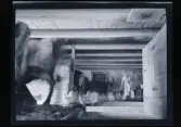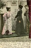 Enligt medföljande noteringar: "Köket. Gamla Fru Johansson gift med kusken på Herrgården o. Fröken Ida Larsson Marie (?) och hembiträdet fröken Rut Löfsten, omkring år 1930?" Se även UMFA53666:1320