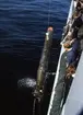 Man gör klart att transportera torpeden upp på u-båtens däck.