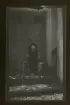 "Sven Råstedt, Källsta Floda" En liten pojke står på trappen till ett hus med en hink i ena handen och (vad som ser ut att vara) en trasig lampa i andra.