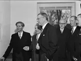 "Cyklotronen mäktigt vetenskapligt instrument", från invigningen av Gustaf Werners institut för kärnkemi, Kåbo, Uppsala december 1949. Kronprins Gustav Adolf i samtal