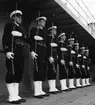 Avlämning till chefen på kaserngården vid Arméns underofficersskola (Försvarets läroverk) i Uppsala 1949, flygvapenkompaniet i förgrunden.