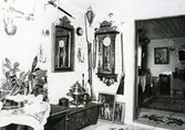 Hemma hos doktor Gustaf Brun. Signerade och hallstämplade gustavianska stockhomsstolar och soffa i doktorinnans rum. På väggen hänger en hel serie akvarellerade konturetsningar med italienska motiv av Desprez samt ett par med motiv från Skeppsbron och Riddarholmen av J. P. Cumelin. Bilder för boken "Svenska Hem i ord och bilder" 1944