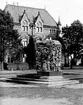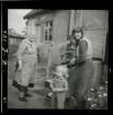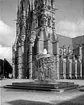 568 F. Stieg Trenter, Torremolinos. Människor samlade runt en springbrunn på ett torg. Stieg Trenter får sina skor putsade.