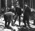 Skoghallsverken: Vattenbegjutning av sågtimmer.