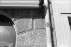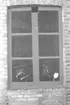 "Ingång till Edwin Andreassons och skyltfönster med diverse artiklar typ flaggstångskulor, rengöringsmedel, kaffekittel (Antonssons blandning)"