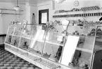 Från gris till skinka. Slakthuset 11 februari 1965. Två män arbetar med livsmedelstillverkning. Närmast på bilden är Evert Wing.