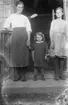 Systrarna Sandén sitter på förstutrappan, Uppland
