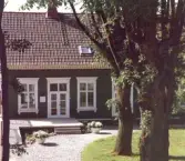 Fem personer. Handelsboden till vänster på bilden och boningshuset till höger. Handelsboden hade galler för fönster. En kakelugn värmde boden och gav lite ljus. Annars fanns ingen elektricitet och belysning var fotogenlampa. Givaren Gunnar berättar att det fanns ytterligare ett hus på gården, där förvarades mjöl. Det fanns en klocka i affären som löpte med lina till boningshuset med hjälp av trådrullar. En snillrik uppfinning, som gjorde att kunden kunde ringa på klockan när handlaren inte var där och så kom man från boningshuset och tog han om uppköpen.