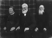 "Morins" i Västansjö: Från vänster Katarina Matilda Morin, född Hallström år 1844, död 1920, Jonas Morin, född 1843, död 1918 och längst till höger "Karp-Olle".