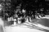 Bild tagen vid resa till USA i september 1977, då var det de dövblindas världskongress i New York, den första Helen Keller-konferensen. Uteservering vid Rockefeller Plaza.