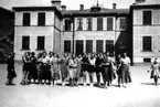 Växjöstudenternas dag. Flera f.d. studenter har samlats för återträff på skolgården till dåv. Växjö Högre Allmänna Läroverk.