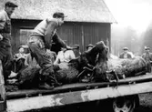 Grisslakt i Målars. Slaktaren hette Nordström från Edstuga.
