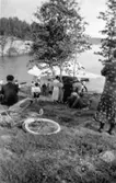 Fyra personer på en brygga. Möjligtvis vid Vassbotten, Vänersborg.