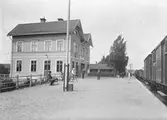 Stationen öppnad av Nässjö- Oskarshamn Järnväg, NOJ 1874. Första stationshus var envånings i trä, det brann i en eldsvåda. 1898 byggdes nytt putsat stationshus i två våningar. 1903 tillbyggdes en halvvånig. Godstrafiken nedlades 1990. Loket som syns på fotot är SJ L29 1781, tillverkat av Motala Verkstad 1910, skrotad 1967 i Vislanda. Det är Mogullok med invändiga cylindrar och 1400 mm. drivhjul. Vid förstatligandet erhöll loket littera L 29 och tjänstgjorde bland annat i Malmö. Skrotad 1967 i Vislanda.