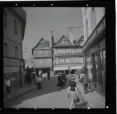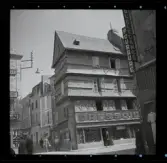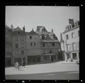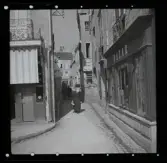 1950. Frankrike. ett barn och flera kvinnor utanföe ett hus