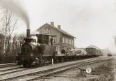 LANTHANDEL OCH BOSTADSHUS INTILL EN JÄRNVÄG VARPÅ KÖR ETT ÅNGTÅG