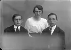 Enligt notering: "Tre vuxna uppställda framför fotografen".