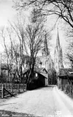 Skara, Järnvägsgatan, läroverket och domkyrkan.