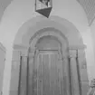 Edåsa kyrka. Gamla ytterdörren uppställd mot västra innerväggen efter restaureringen 1941.