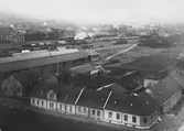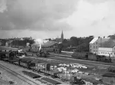 Bangårdsområde i Åtvidaberg. Lokalgodståg och motorvagn Yo8 på nornalspåret.